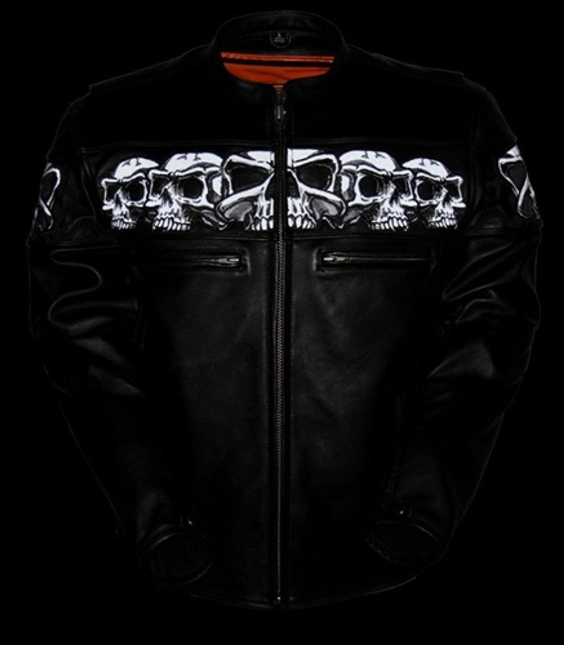 Select options This product has multiple variants. The options may be chosen on the product page Quick ViewMen’s Reflective Skulls Leather Motorcycle Jacket