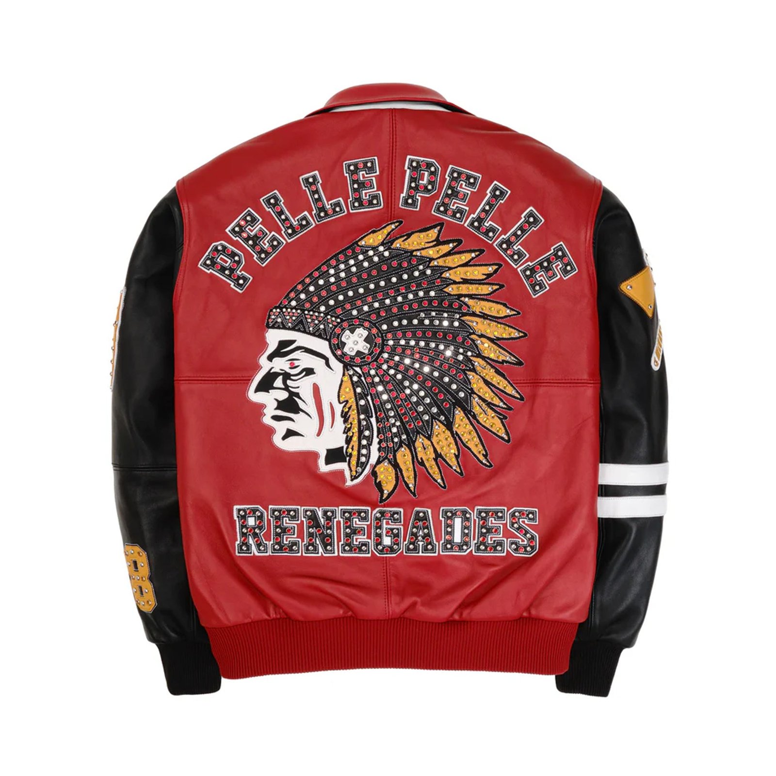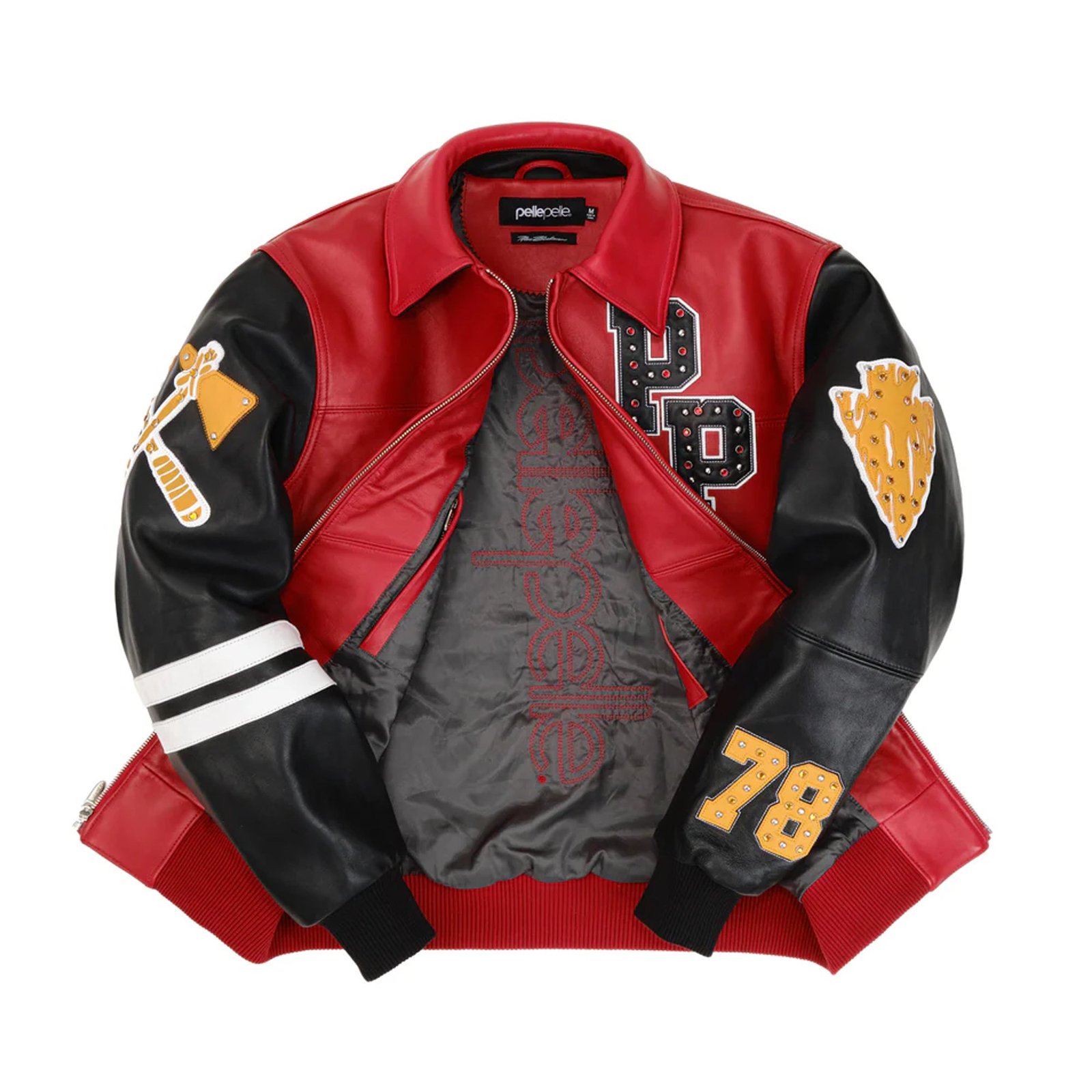 PELLE PELLE RED & WHITE COWHIDE LEATHER JACKET FOR MEN ICONIC VARSITY STREETWEAR LOOK