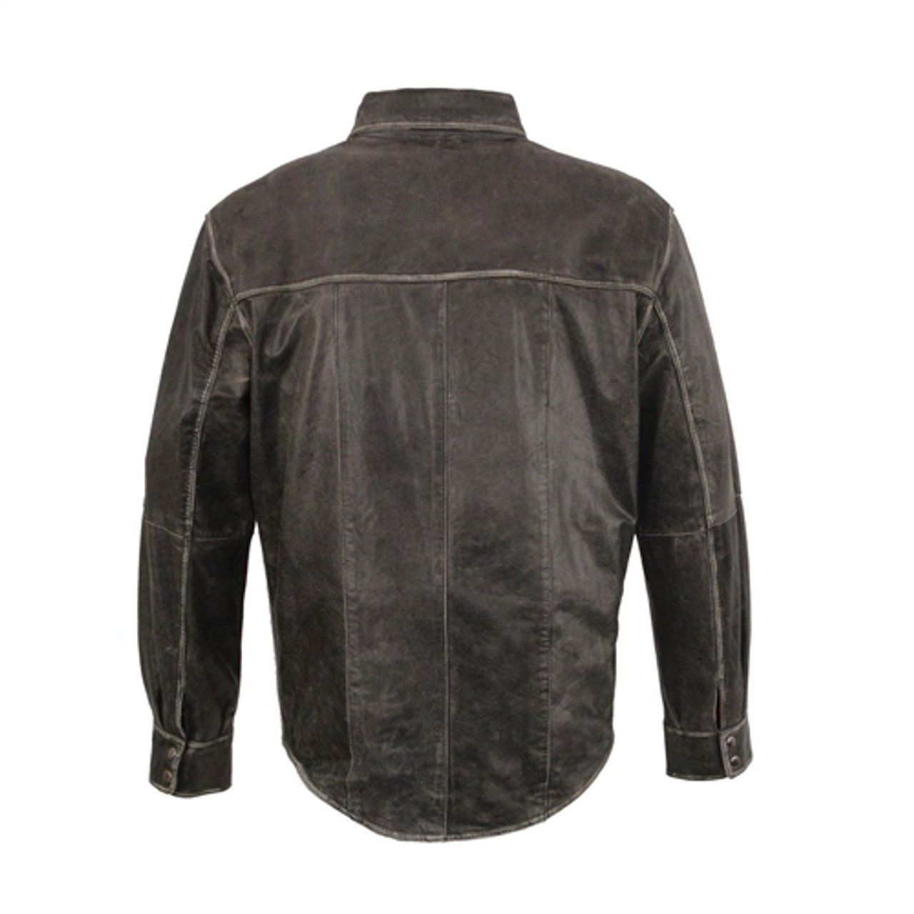 Men’s Distressed Gray Leather Motorcycle Shirt