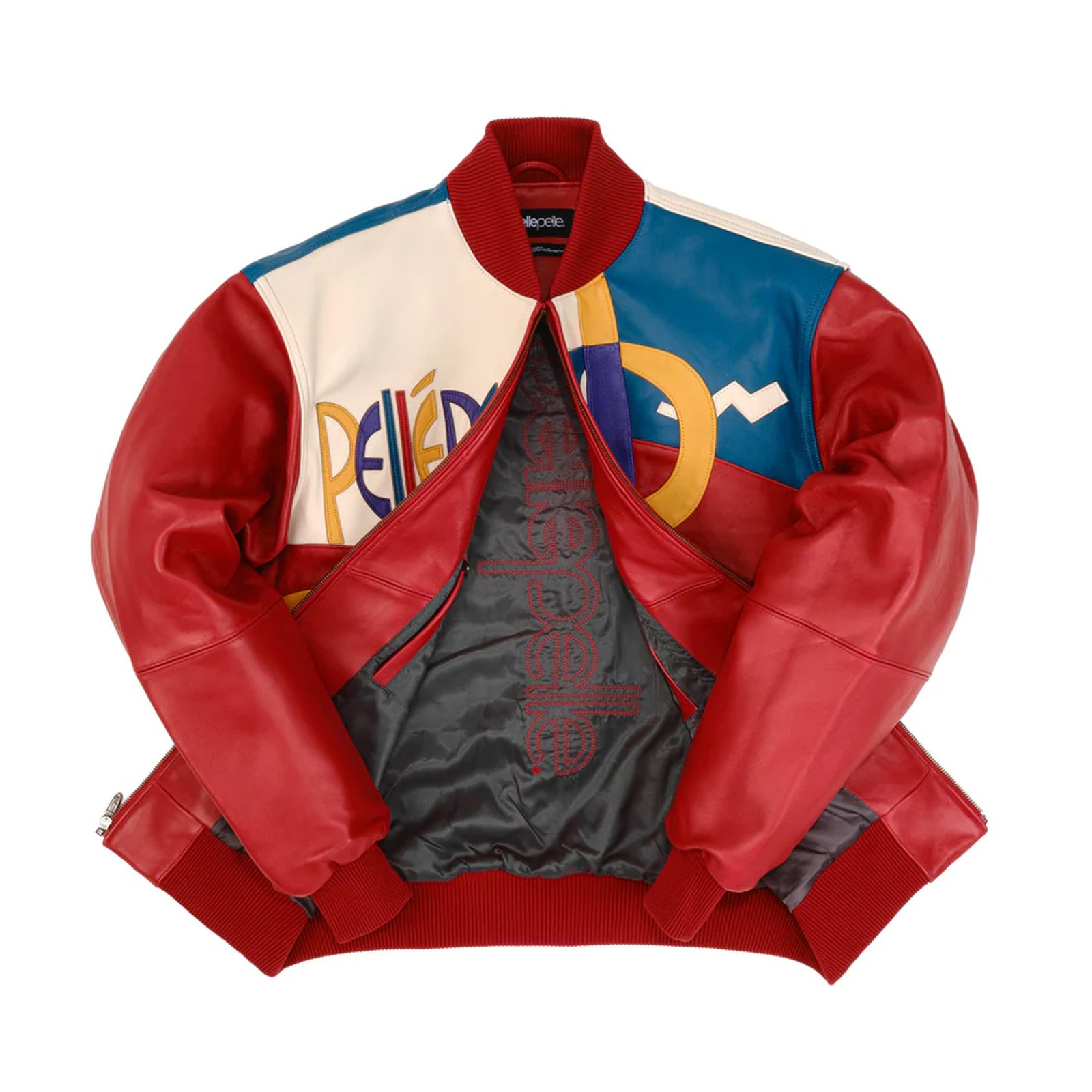 PELLE PELLE SODA CLUB 1978 COWHIDE LEATHER JACKET FOR MEN – RED, NAVY & CREAM VARSITY BOMBER