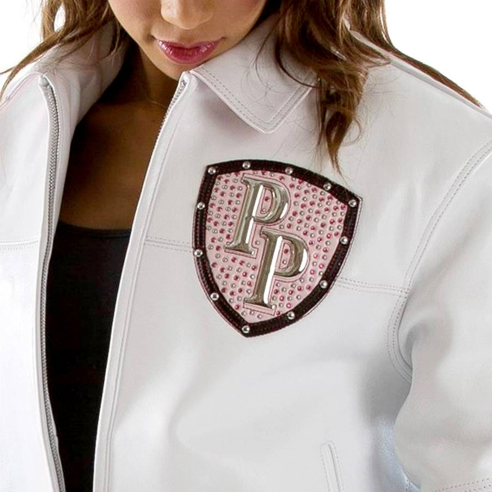 WOMEN’S WHITE PELLE PELLE PINK STUDDED PP SHIELD JACKET PREMIUM COWHIDE LEATHER